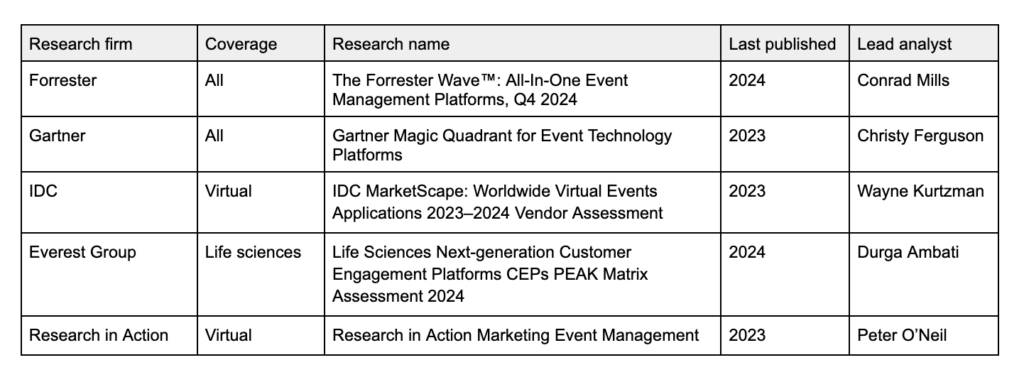 Who is watching the event tech category? A guide to research coverage