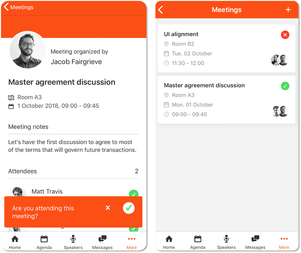 Event organizers can prompt app engagement and networking among participants by encouraging the use of the Meetings module. Here are just a couple thought-starters for how to leverage Meetings to enhance your next event: